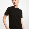 un incontournable pour chaque saison. confectionné en viscose extensible lisse pour une coupe seconde peau, ce t-shirt à col rond ancrera les pantalons imprimés, les jupes, les jeans et plus encore. portez-le seul ou superposé sous un blazer chic.