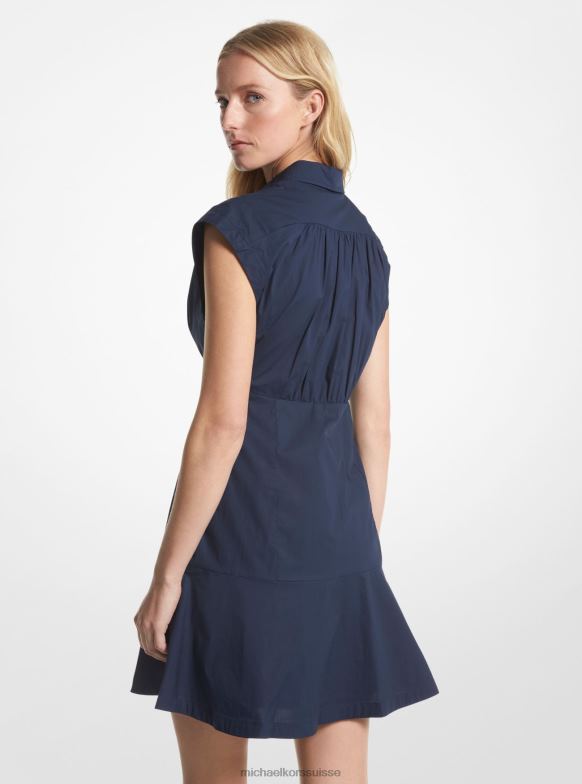 bleu nuit Michael Kors robe-chemise en popeline de coton biologique stretch femmes 8Z40T5 | Michael Kors Suisse