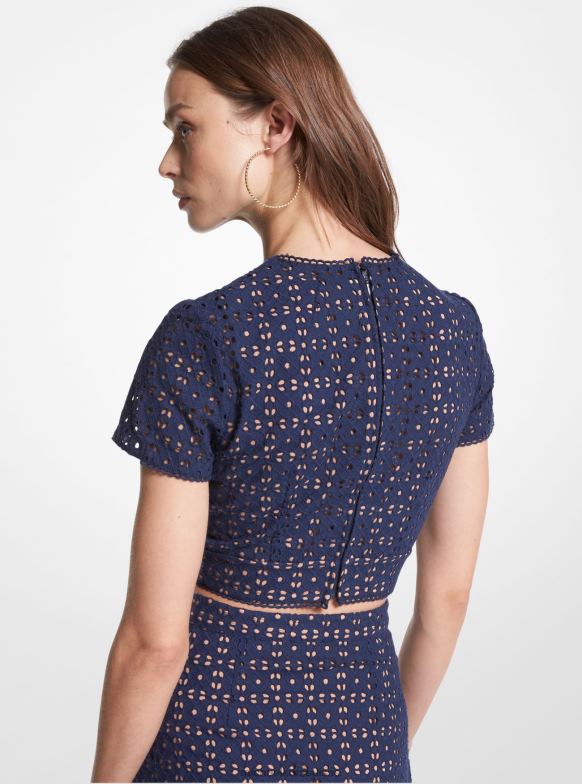 ce style combine une silhouette de haut court cool avec l’aspect raffiné d’un œillet en coton. léger et respirant, il présente une doublure douce couleur chair pour une couverture et un ajustement confortable. Portez-le avec un pantalon taille haute ou sa jupe assortie.