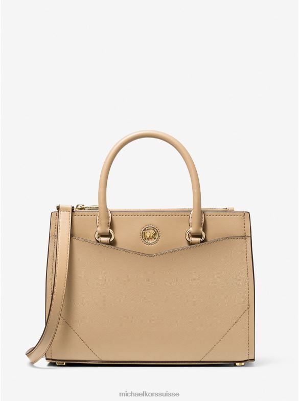 une étude de raffinement. confectionné en cuir saffiano dans une silhouette structurée, le sac everly apportera une touche féminine à presque tous les looks de votre garde-robe. portez-le par les poignées supérieures ou par la bandoulière réglable les jours où vous souhaitez rehausser d’un cran votre style décontracté.