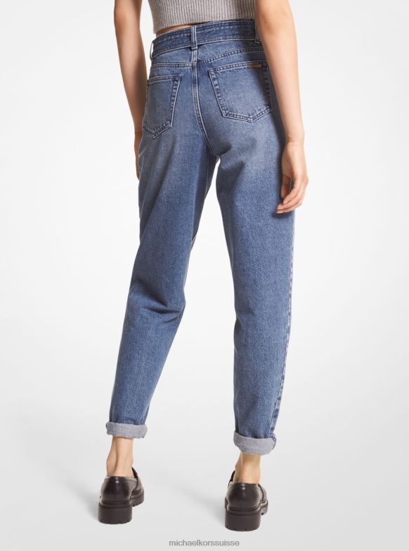 blanc optique Michael Kors jean évasé à ceinture en denim femmes 8Z40T167 | Michael Kors Suisse