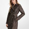 le trench-coat est un éternel classique de la garde-robe. confectionnée en sergé de coton, cette version moderne présente un devant droit et une coupe ajustée accentuée par une ceinture à maillons de chaîne griffée. portez-le avec un col roulé et des jeans évasés pour un look rétro-chic.