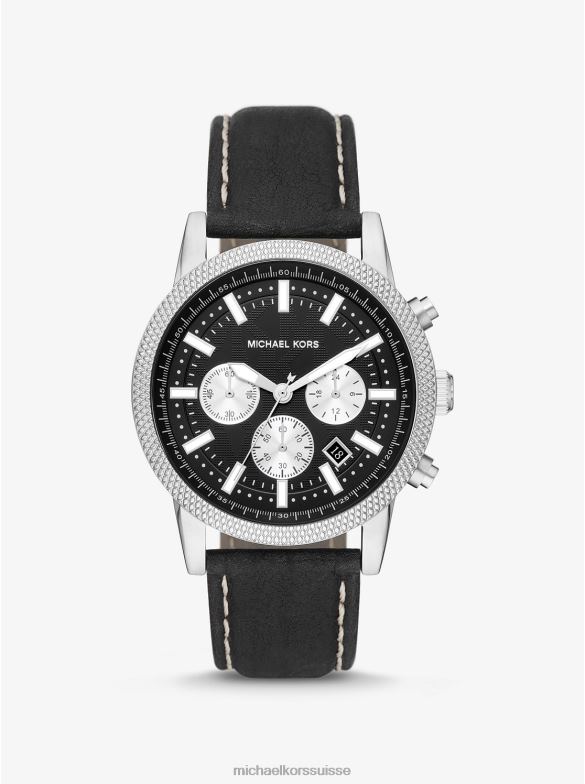 noir Michael Kors montre oversize en métal argenté et en cuir Hutton hommes 8Z40T1096 | Michael Kors Suisse