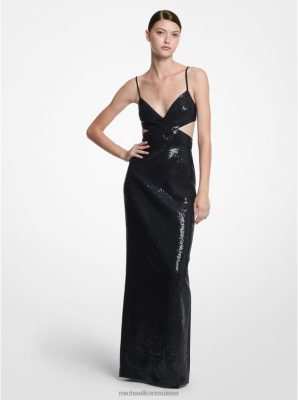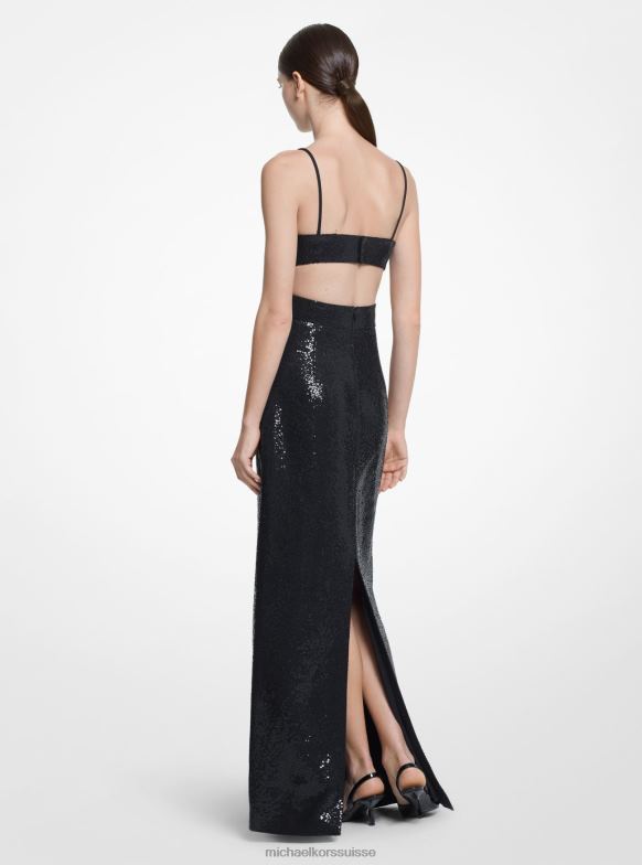 confectionnée en double crêpe de sable, cette robe colonne moulante est ornée de sequins brillants brodés à la main. un corsage entrecroisé cède la place à une découpe qui met à nu la peau et qui confère un intérêt graphique à la silhouette élégante. restez classique avec des talons aiguilles noirs.