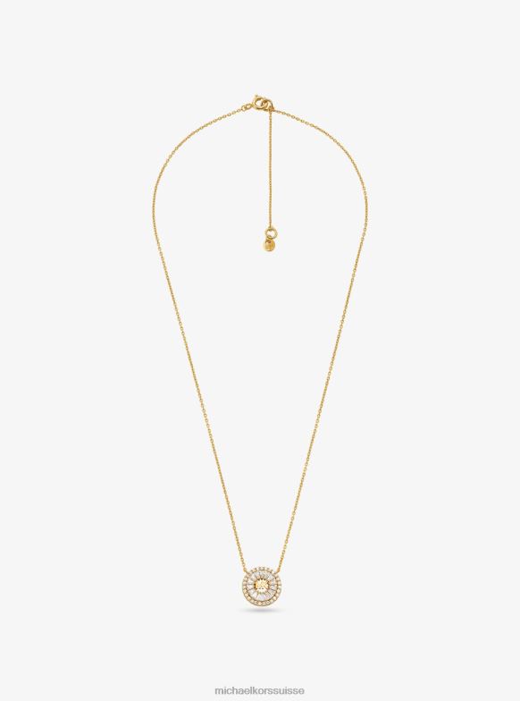 entouré d’un anneau extérieur pavé, ce collier à pendentif d’inspiration florale présente nos initiales « mk » entourées d’un halo brillant de zircones cubiques effilées. suspendu par une chaîne délicate, il ajoutera un éclat instantané à n’importe quel look. il est disponible en plaqué rhodium, or 14 carats et or rose 14 carats pour une finition radieuse.