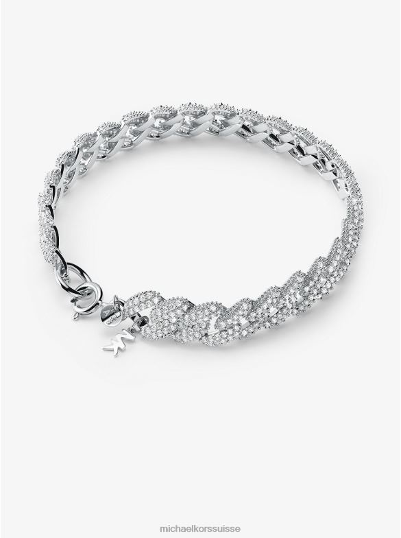 des accents pavés étincelants ajoutent une allure féminine à ce bracelet à maille gourmette. fabriqué en argent sterling et disponible en deux placages ultra brillants, il présente notre breloque initiale avec logo pour une touche signature. portez-le seul ou associé à des accessoires tout aussi remarquables.