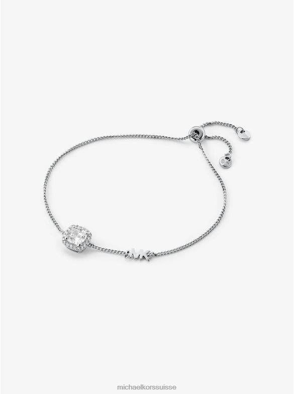 à la fois élégant et sobre, ce bracelet coulissant est destiné à être porté au quotidien. Fabriqué en argent sterling plaqué rhodium, il présente une pierre taille coussin audacieuse soulignée de détails pavés scintillants et les initiales de notre logo pour une touche signature.