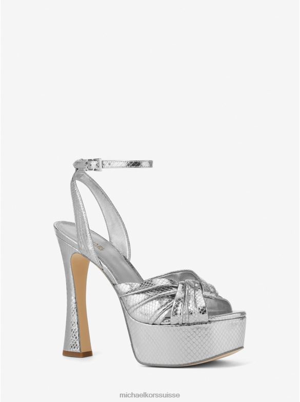 notre sandale Selena rehaussera à coup sûr votre look après les heures normales. réalisée en cuir métallisé embossé serpent, cette paire saisissante est dotée de brides nouées et d’un talon sculptural équilibré par une plateforme de grande taille. portez-le pour un effet allongeant instantané des jambes.