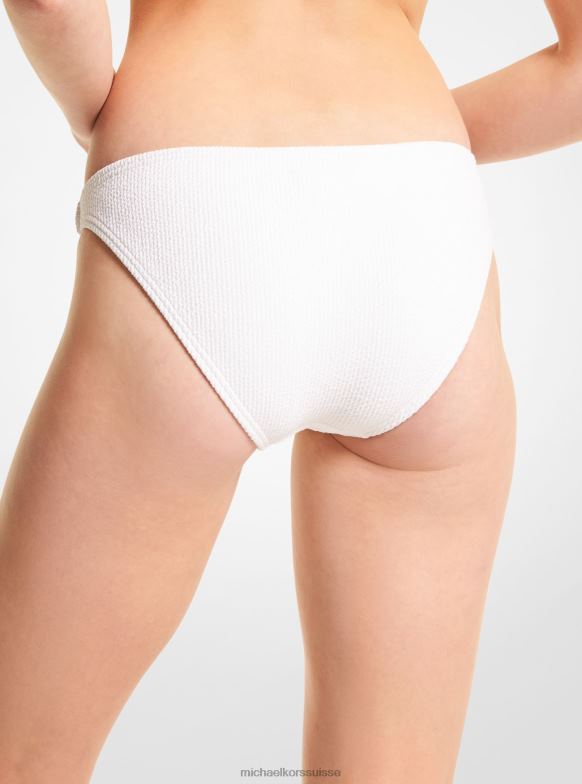 ces bas de bikini sont conçus pour être portés avec le haut assorti, mais peuvent être facilement mélangés et assortis avec des styles similaires. coupé pour une coupe taille basse, il est fabriqué à partir de tissu extensible texturé et entièrement doublé. nous aimons la façon dont les anneaux polis avec logo ajoutent une touche de brillance.