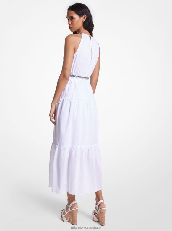 blanc Michael Kors robe mi-longue en coton avec col licou et chaîne femmes 8Z40T23 | Michael Kors Suisse