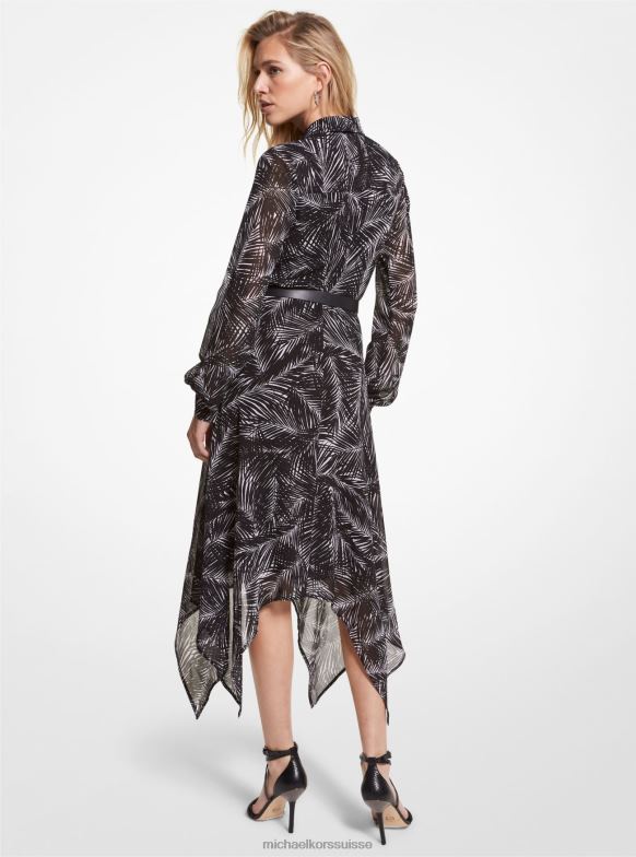 une robe chemise fluide crée la base parfaite pour les accessoires chics de la saison. cette version ceinturée est confectionnée en georgette partiellement recyclée et imprimée d’un motif de palmier. mettez l’accent sur l’ourlet mouchoir avec des sandales à lanières dans une teinte discrète.