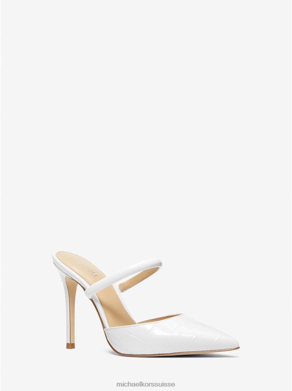 blanc optique Michael Kors mule en cuir embossé crocodile Jessa femmes 8Z40T763 | Michael Kors Suisse