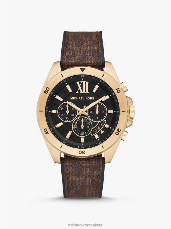 notre montre Brecken combine une silhouette intemporelle avec précision et style. conçue en acier inoxydable doré avec un bracelet à logo pour une finition signature, cette montre surdimensionnée est dotée d’une échelle tachymétrique et d’un mécanisme de chronographe pour mesurer le temps sur la distance.