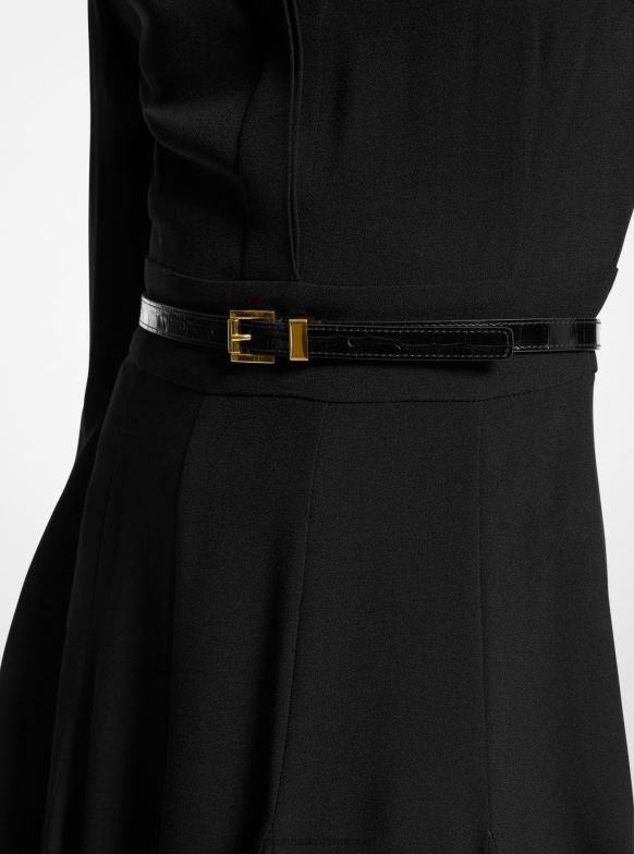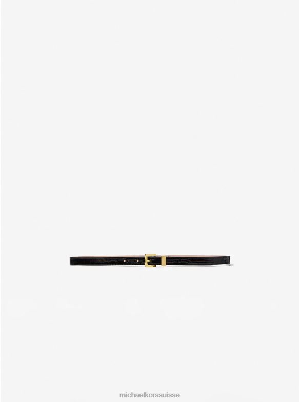 fabriquée en Italie, cette ceinture est confectionnée de main de maître en cuir embossé crocodile et se ferme à l’aide d’une boucle carrée polie. glissez la ceinture étroite dans les passants de votre pantalon préféré ou autour de la taille d’un blazer structuré.