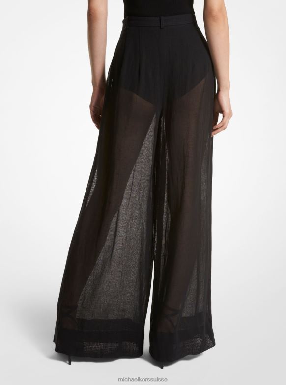 Le lin à peine présent donne une touche audacieuse à ce pantalon palazzo. ils sont conçus dans une silhouette large et présentent des plis doux qui confèrent un mouvement aéré à chaque pas. Portez-les avec un body pour les occasions estivales ou superposés sur un maillot de bain pour une tenue chic lors de votre prochaine escapade. fabriqué en italie.
