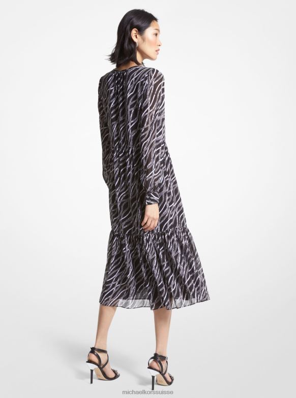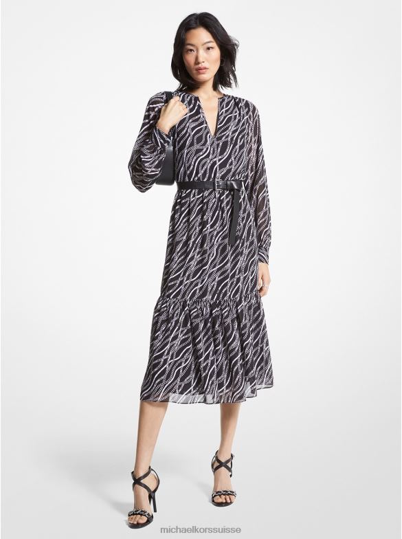 noir Michael Kors robe mi-longue en georgette à imprimé Status femmes 8Z40T19 | Michael Kors Suisse