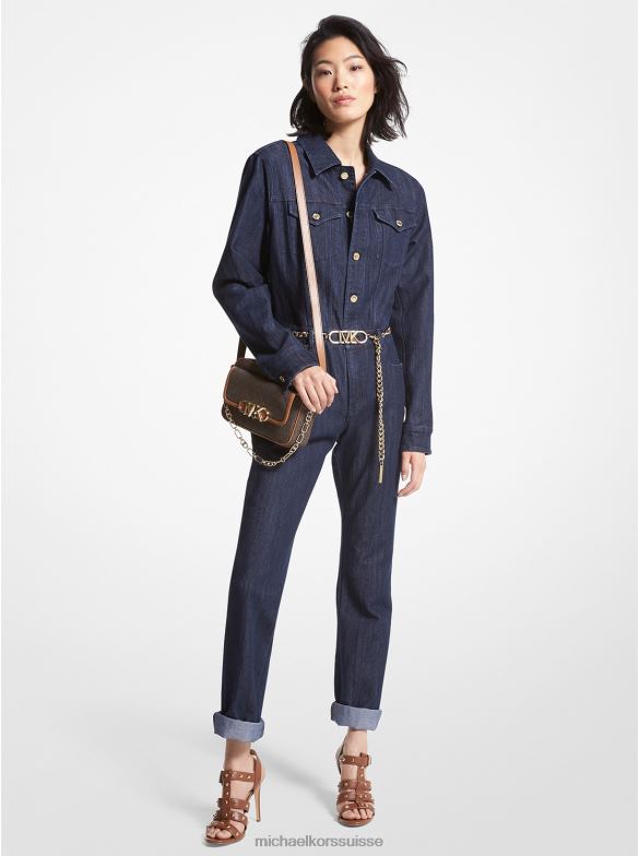 une tenue complète en une, cette combinaison vous permettra de vous habiller facilement, même lors des journées les plus chargées. il est confectionné en denim délavé indigo selon une silhouette droite et doté de nombreuses poches. associez vos accessoires à la ceinture à maillons en chaîne avec logo empire emblématique et aux boutons dorés.